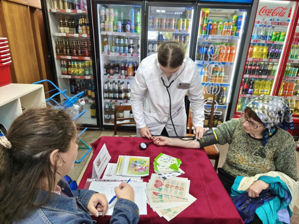 Местные жители с удовольствием воспользовались возможностью побеседовать со специалистами, получить важную информацию по профилактике болезней системы кровообращения, а так же рекомендации медиков по поддержанию хорошего самочувствия. Здесь же, в импровизированном медицинском кабинете, который расположился в помещении магазина, все желающие смогли измерить давление и получить в случае необходимости рекомендации по его нормализации.