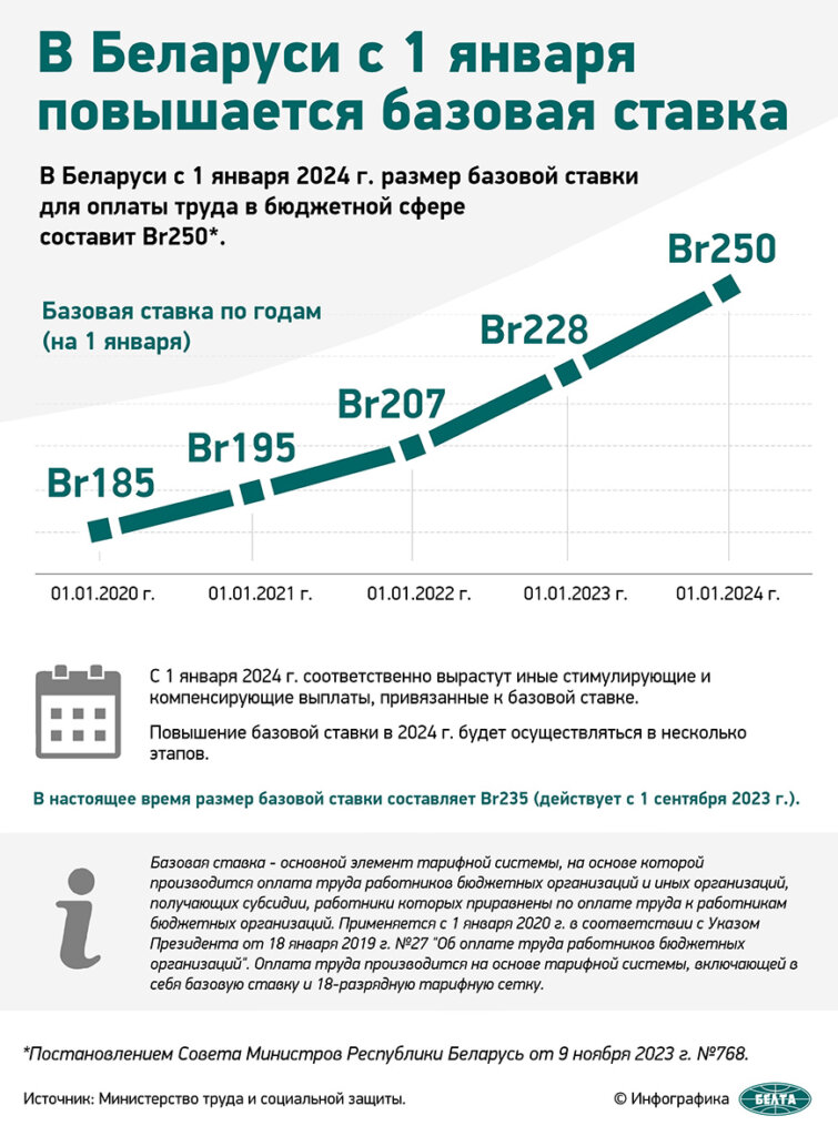Справочно: В настоящее время размер базовой ставки составляет Br235 (действует с 1 сентября 2023 г.).