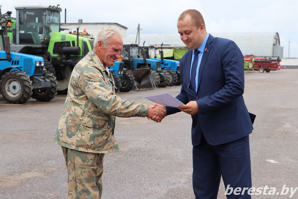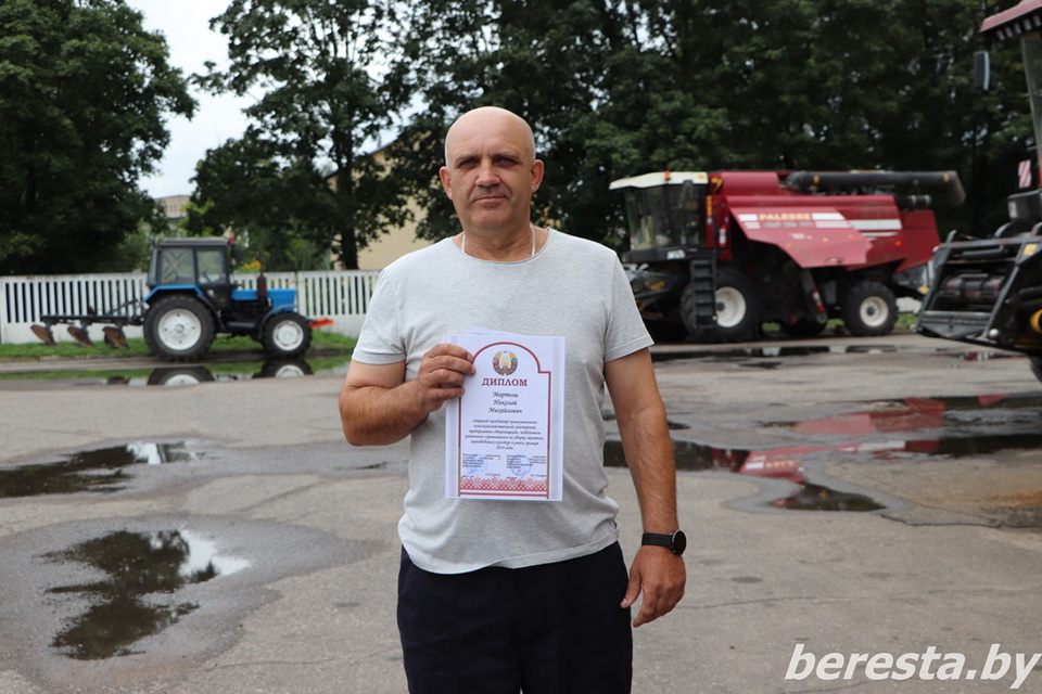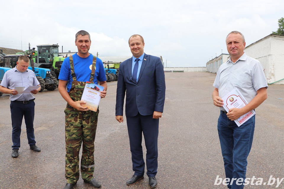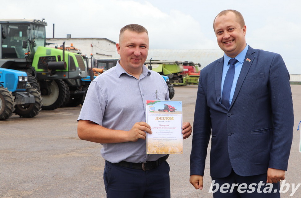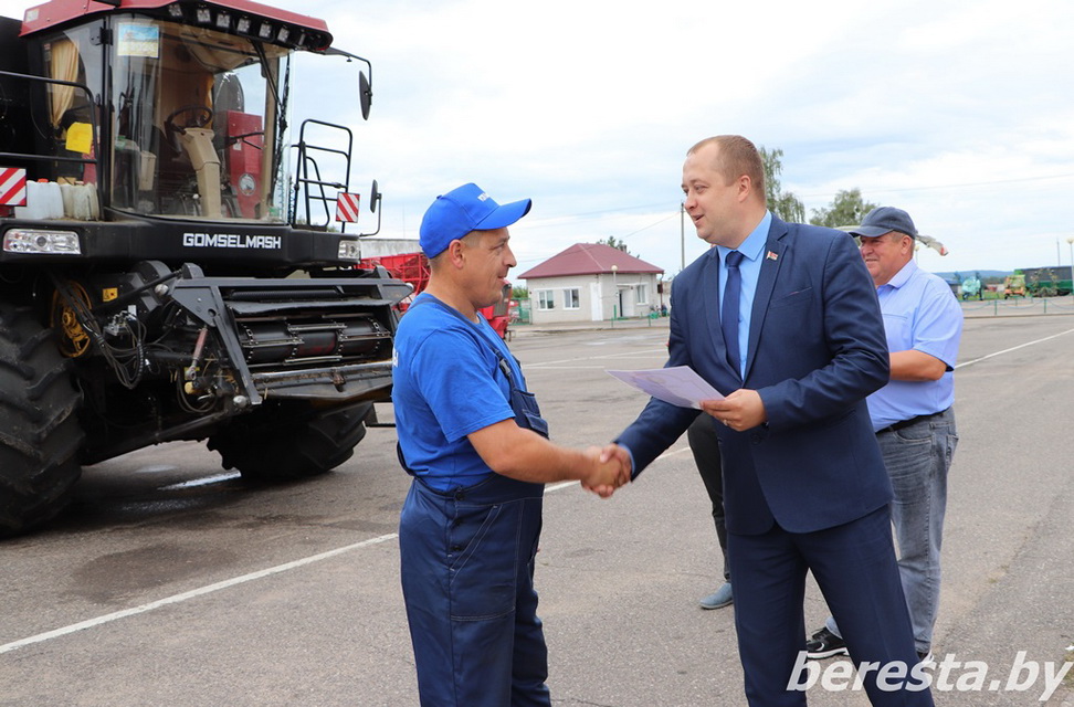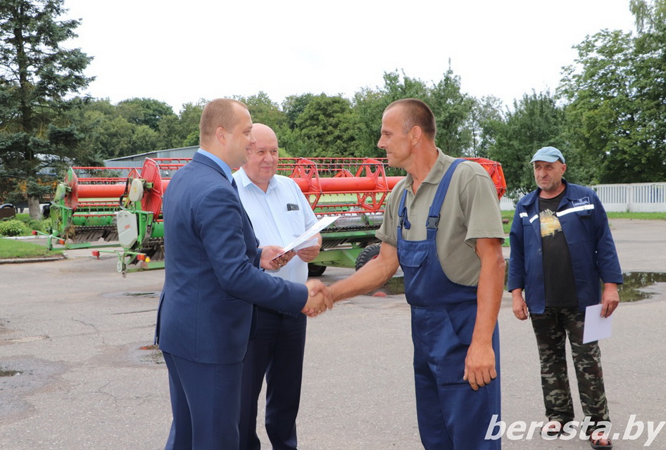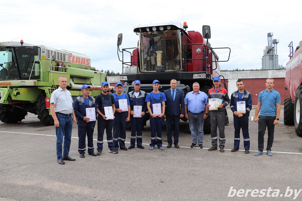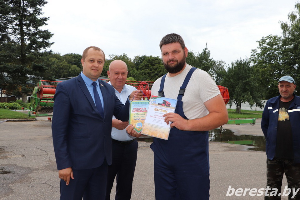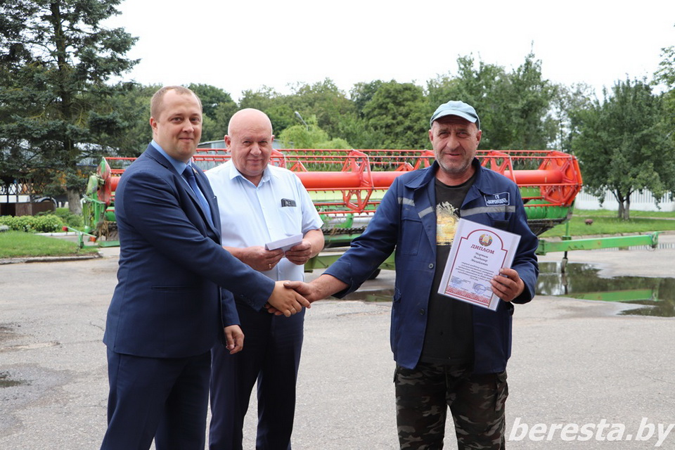 25 августа первый заместитель председателя райисполкома – начальник управления сельского хозяйства и продовольствия Александр Курило и председатель Берестовицкой районной профсоюзной организации работников АПК Владимир Онищик вручили областные дипломы, вымпелы победителей соревнования и денежное вознаграждение первым «тысячникам» в своих классах комбайнов. Среди них – старший комбайнер Василий Василевский из КСУП «Воронецкий», старший комбайнер Виктор Гойлик и комбайнер Максим Гойлик из РСУП «Олекшицы», а также старший комбайнер Дмитрий Кухарчик и комбайнер Михаила Дмитриевич из КСУП «Пограничный-Агро».
