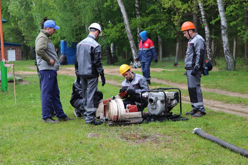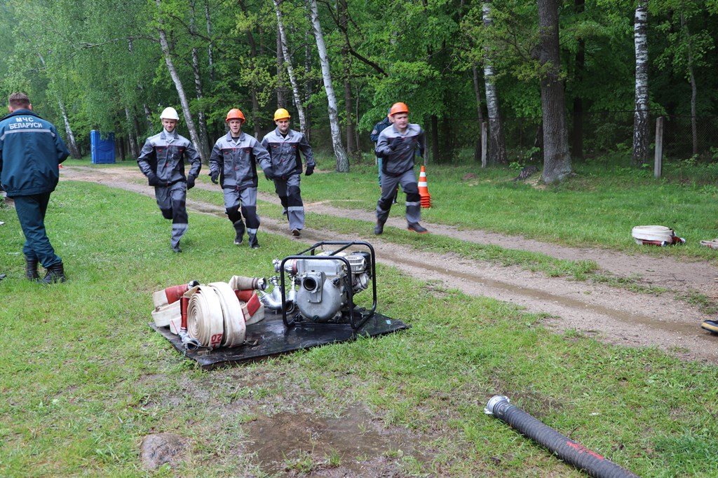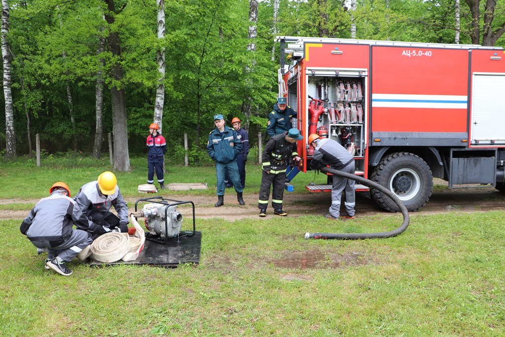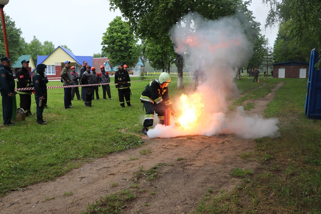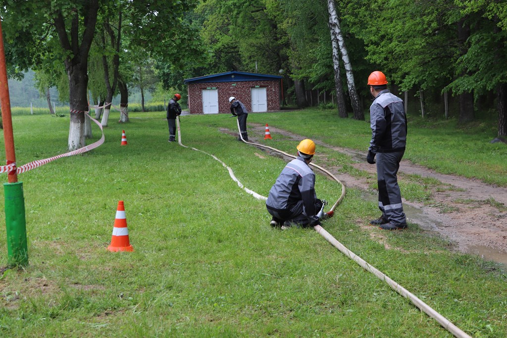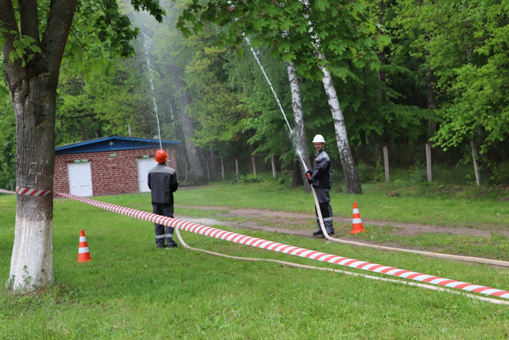 Пожарные дружины, в свою очередь, проходили пожарную эстафету и боевое развертывание от мотопомпы.