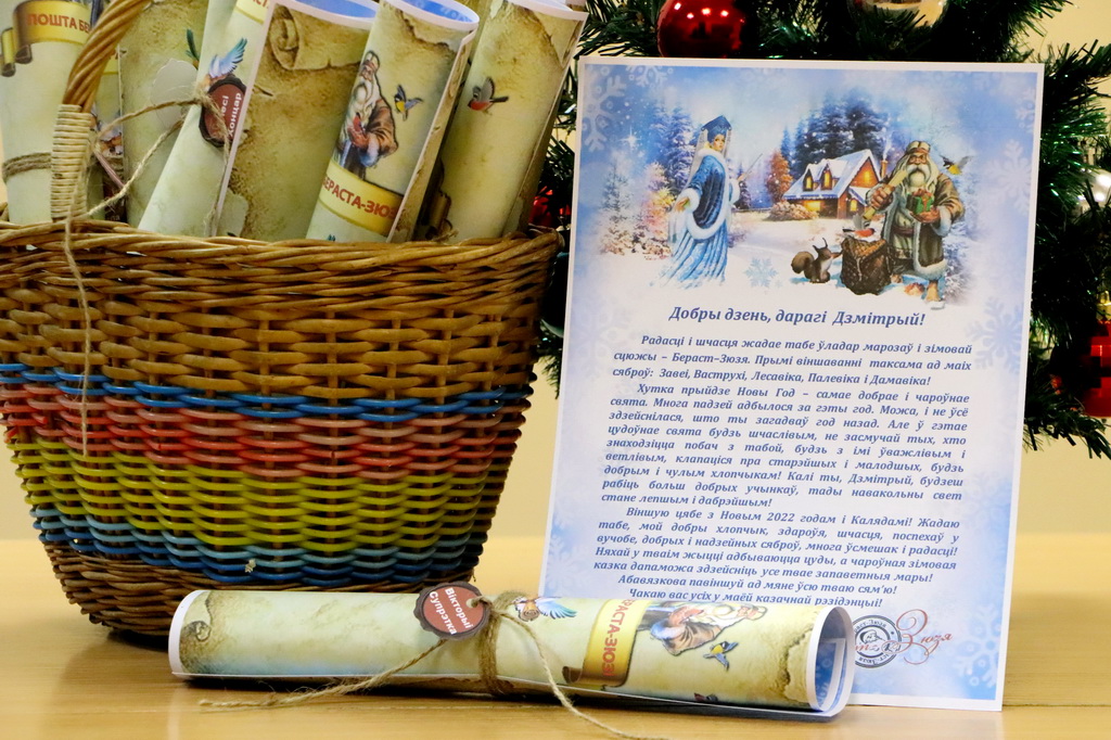 Почта Берест-Зюзи, или берестовицкого Деда Мороза, активно работает вот уже вторую неделю. Помощники мифологического властителя холодов Лесовики без устали колесят по учреждениям образования района, чтобы лично вручить письма-поздравления ребятам, которым предстоит экскурсия в резиденцию Берест-Зюзи и госпожи Метелицы. Вручено уже свыше пятисот писем.