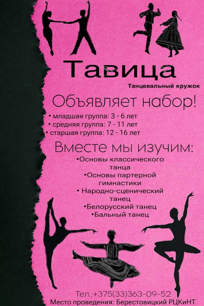 Развить пластику и чувство ритма поможет танцевальный кружок «Тавица». Весело, активно и увлекательно проводить свое время юные берестовичане могут в любительском объединении «По следам ТВ-шоу» и клубе любителей игры «ИгроБум».