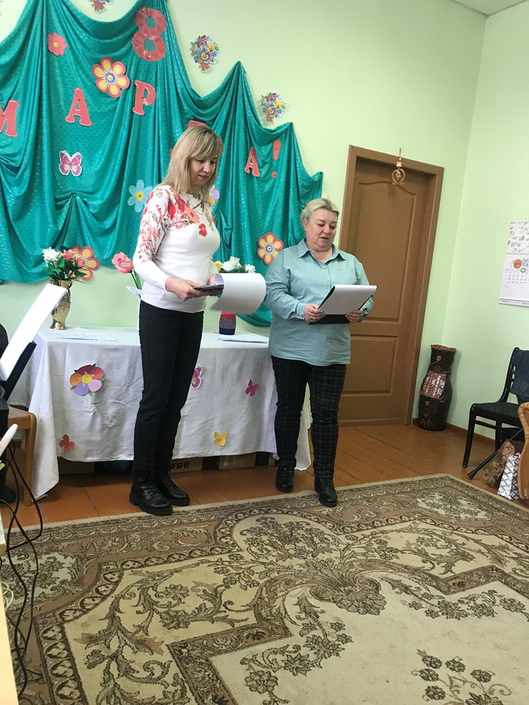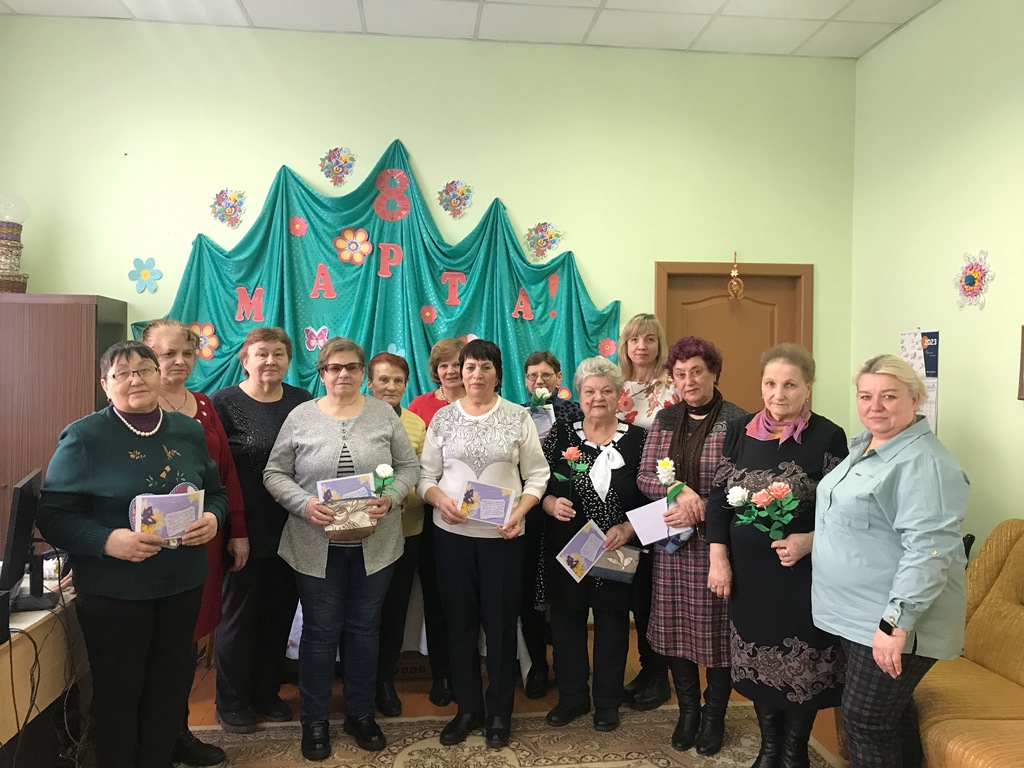 В ходе программы звучали поздравления и чествования для женщин отделения дневного пребывания для граждан пожилого возраста с Международным женским днём – 8 марта. Сотрудники центра подготовили для посетителей стихи, песни, сценку и конкурсы, а также сувениры и открытки, изготовленные на занятиях кружка «Скарбонка». Гости праздника получили море положительных эмоций и прекрасных воспоминаний.