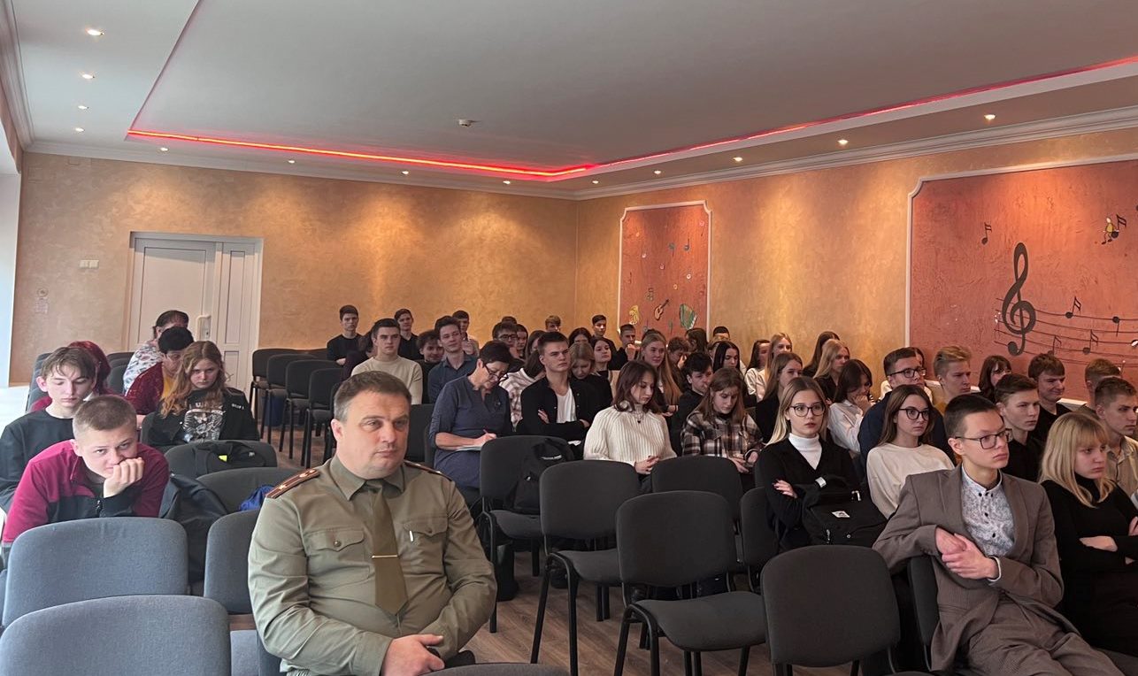 Андрей Сергеевич рассказал старшеклассником о том, как стать курсантом Военной академии, познакомил со специальностями, которые можно получить в этом вузе, и остановился на особенностях обучения в академии.