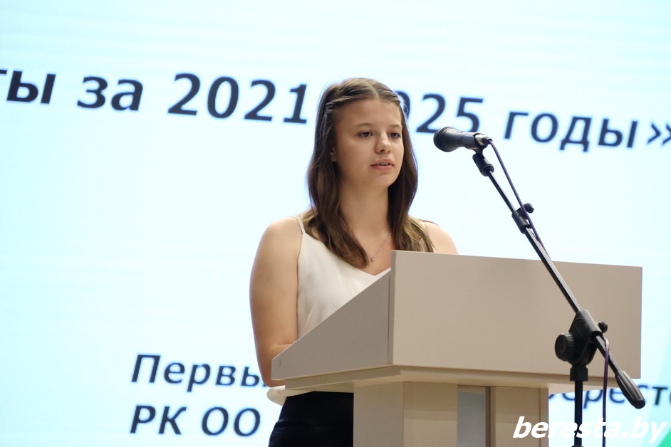 С отчетом о деятельности Берестовицкой районной организации ОО «БРСМ» за 2021 – 2025 годы и перспективах дальнейшего развития на 2026-2030 годы выступила первый секретарь Берестовицкого РК ОО «БРСМ» Елена Карнилович.