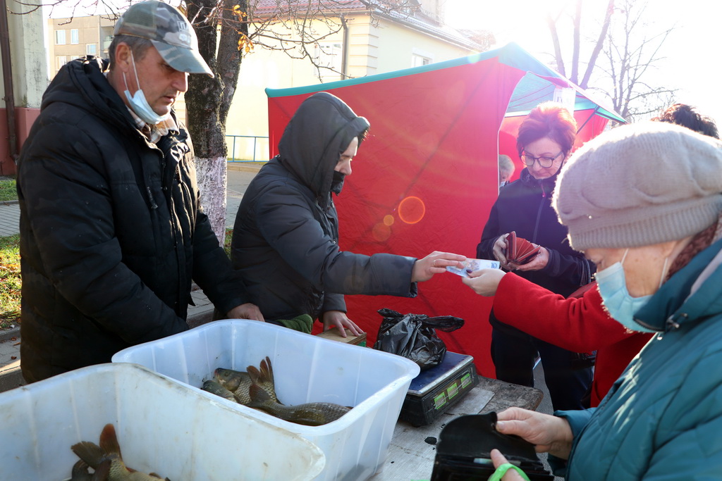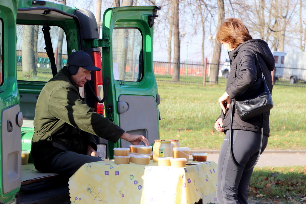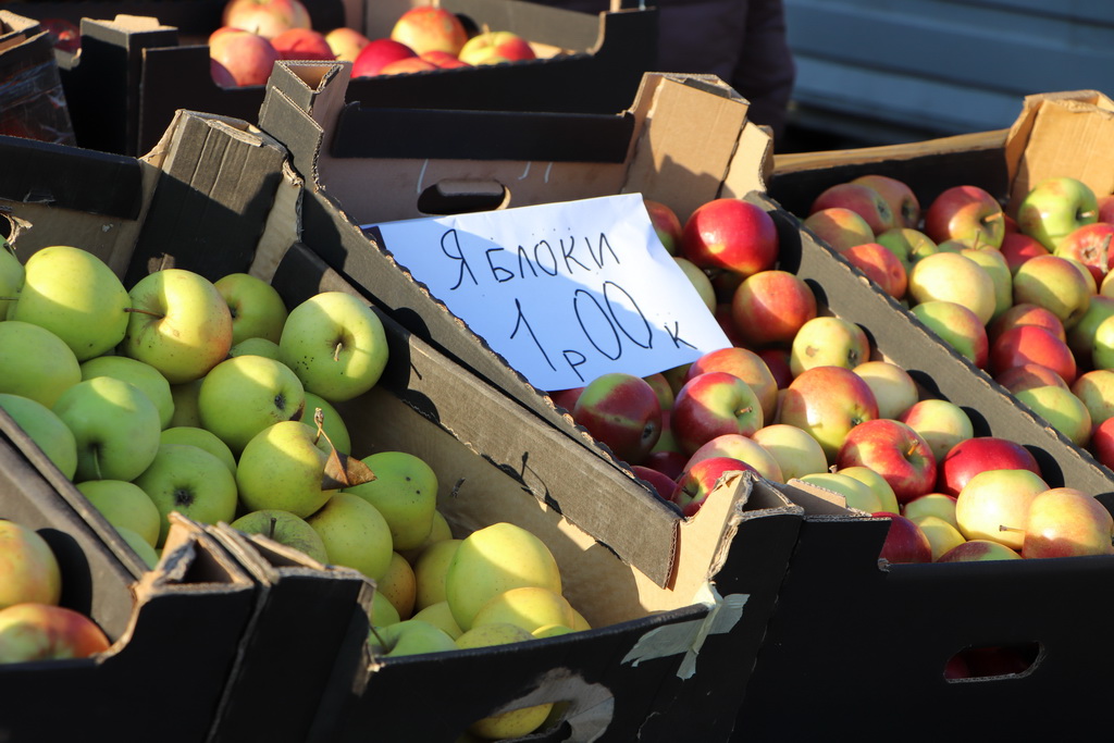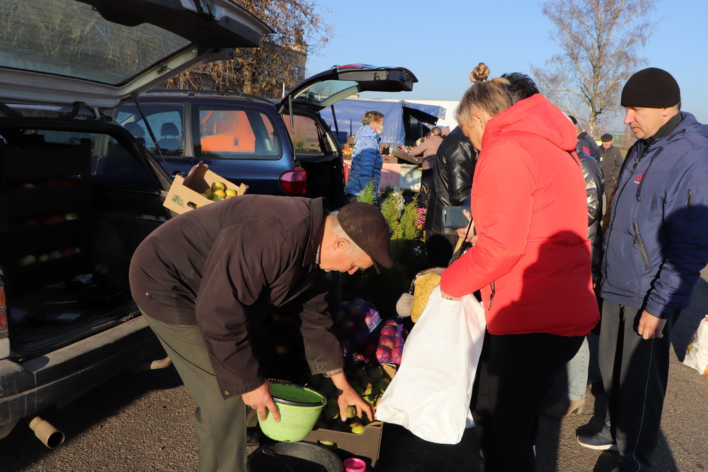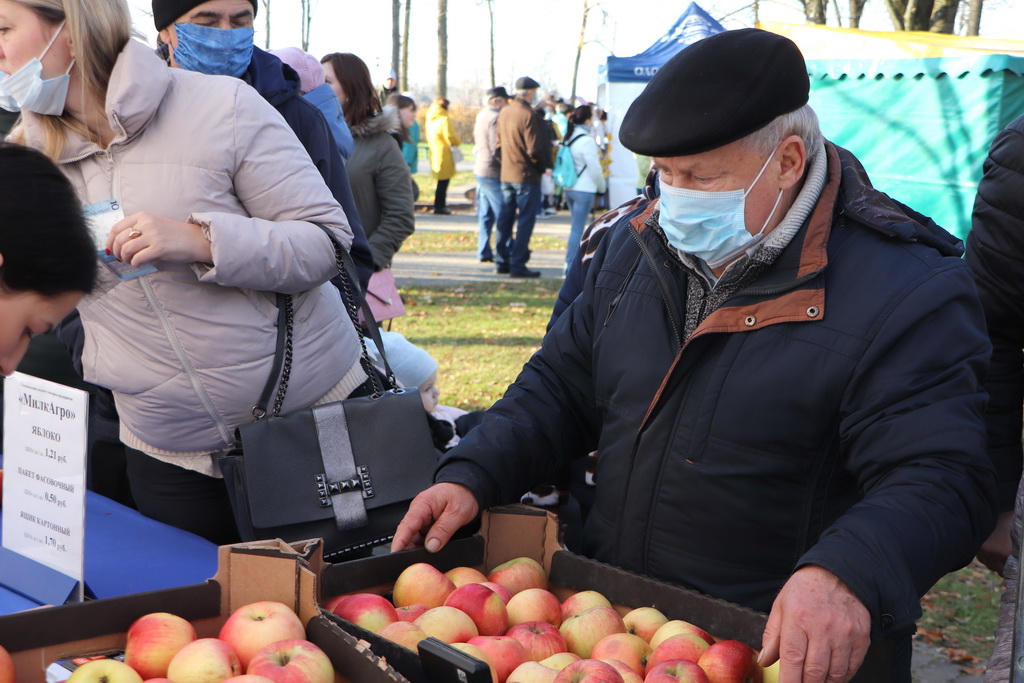Берестовичанам была предложена плодоовощная, мясная и рыбная продукция, саженцы, зерно, яблоки и груши.