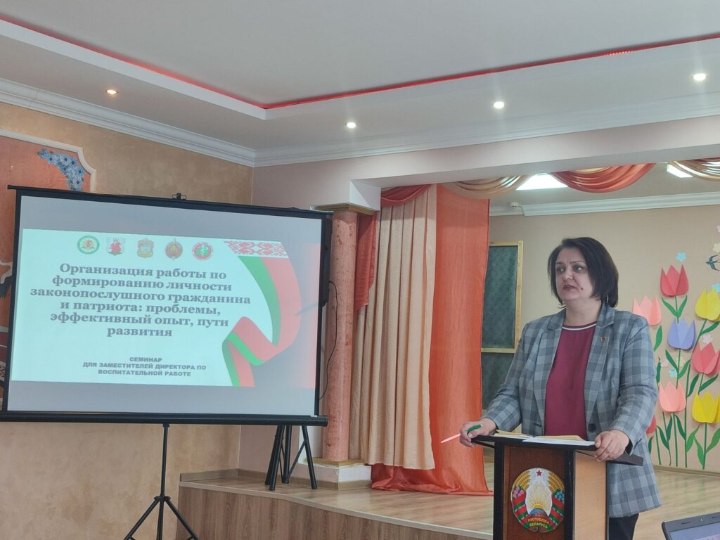 Методист Берестовицкого УМК Ирина Замировская обозначила проблемное поле семинара. Систему работу учреждения образования по формированию законопослушного гражданина и патриота представила директор Большеберестовицкой средней школы Надежда Красовская. Заместитель председателя КДН Марта Лозовицкая остановилась на анализе преступлений и правонарушений, совершенных несовершеннолетними, а также на особенностях организации профилактической работы в школе. Опытом работы по военно-патриотическому воспитанию учащихся поделился руководитель по военно-патриотическому воспитанию Алексей Кудашов. Заместитель директора по воспитательной работе Большеберестовицкой СШ Елена Гончаревич в творческой форме представила организацию работы с несовершеннолетними во внеурочной деятельности.