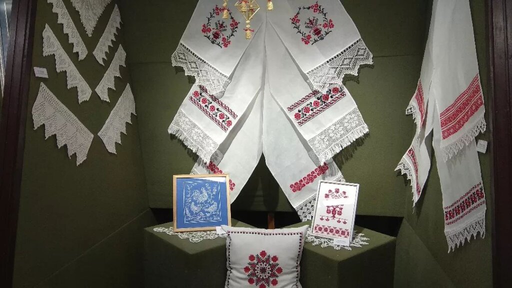 Одним из направлений отдела ремёсел и традиционной культуры является   старинное ремесло – кружевоплетение.  Мастер Екатерина Хилюта представила на выставке коллекцию салфеток и кружев.