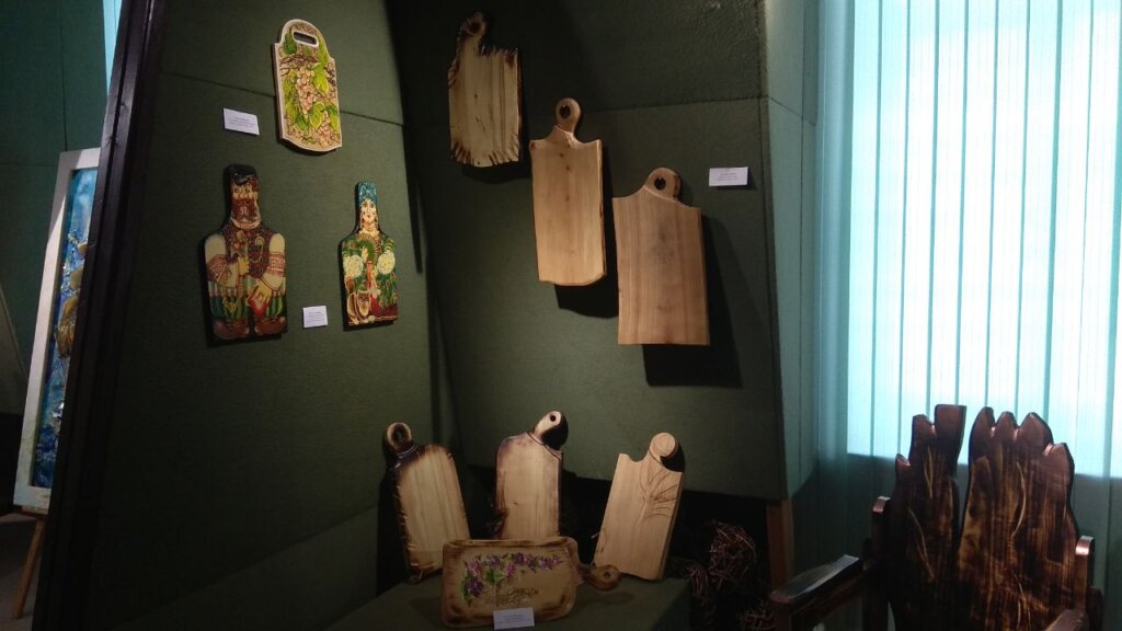 Михаил и Наталья Головач представили свои работы из дерева.  Михаил работает с природным материалом около 30 лет. Большую часть своего свободного времени посвящает резьбе по дереву. С каждым разом работа мастера усложняется, он стремится приблизить её к реалистичному образу. Работы Михаила участвуют не только в выставках, но так же могут использоваться в быту.  Наталья пробует себя в различных техниках декоративно-прикладного творчества, таких как декоративной росписи по дереву, декупаже, работе с природными материалами, живописи. Но роспись по дереву – одно из самых любимых направлений в её творчестве. Так с помощью комбинированных техник мастера придают дереву художественную ценность, делая его предметом искусства.