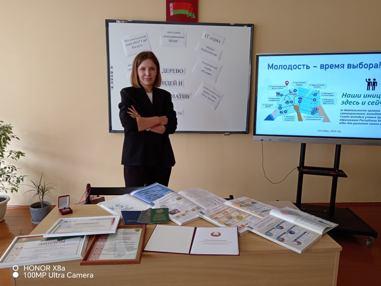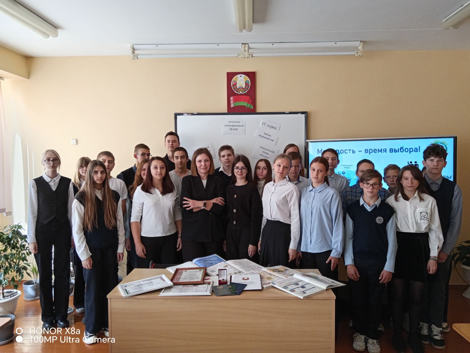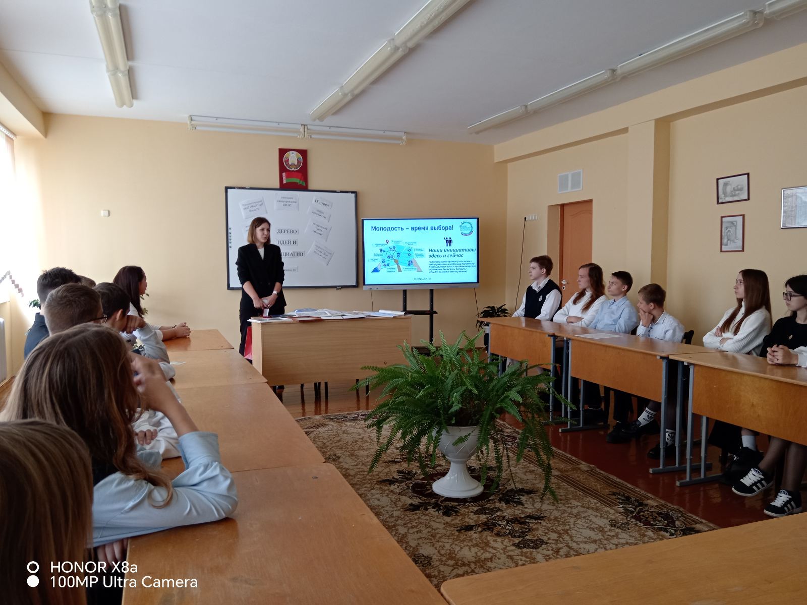 В рамках информационно-образовательного проекта «ШАГ» 26 сентября классный руководитель Х класса Коломеец Елена Викторовна провела информационный час для учащихся VIII-ХІ классов на тему: «Молодость – время выбора. Наши инициативы здесь и сейчас».