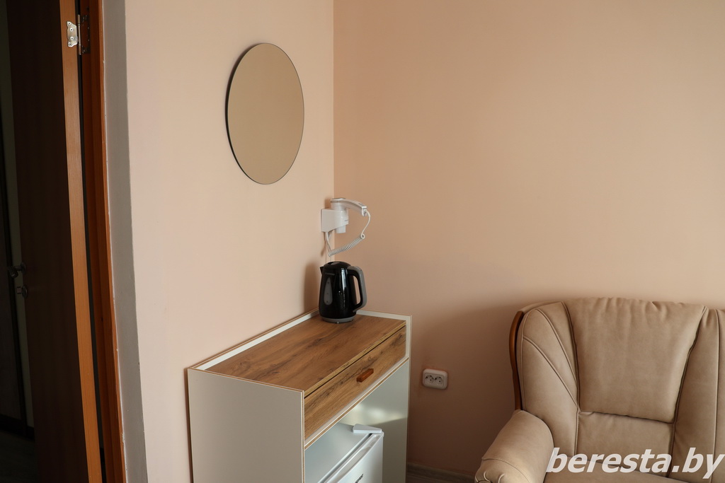–  Мы гордимся тем, что смогли реализовать этот проект. Видеть, как простой, ранее не самый комфортный объект, превращается в современное, функциональное пространство – это огромное удовлетворение. Это показатель того, как совместными усилиями можно добиться значительных результатов, – подчеркнул мастер по строительству Берестовицкого РУП ЖКХ Александр Марук.Сегодня обновленное здание готово принять гостей в 9-ти одноместных и двухместных гостиничных номерах на первом этаже, второй и третий этажи отведены под общежитие с 26-тью однокомнатными квартирами. Есть wip-номер и номер для инвалидов, оборудованы под кафе два зала – малый и большой. Предусмотрен кабинет для парикмахерской.