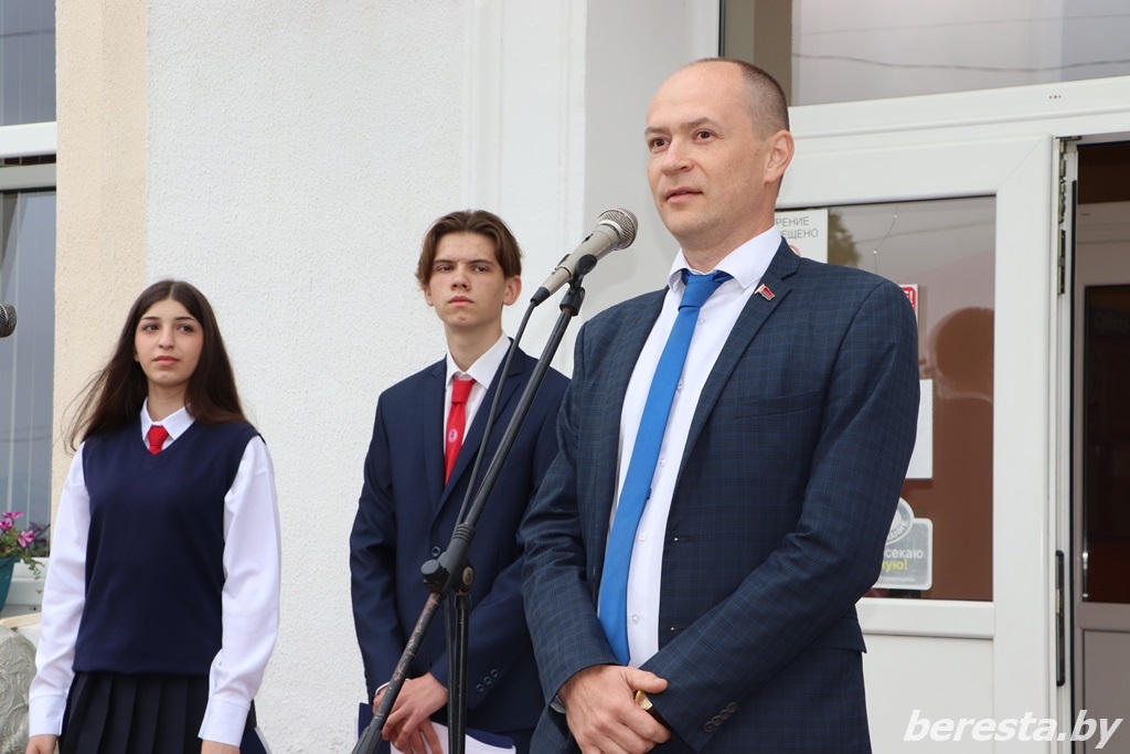 На торжественной линейке в Олекшицкой средней школе среди почетных гостей присутствовал председатель Берестовицкого районного исполнительного комитета Дмитрий Кадргулов.