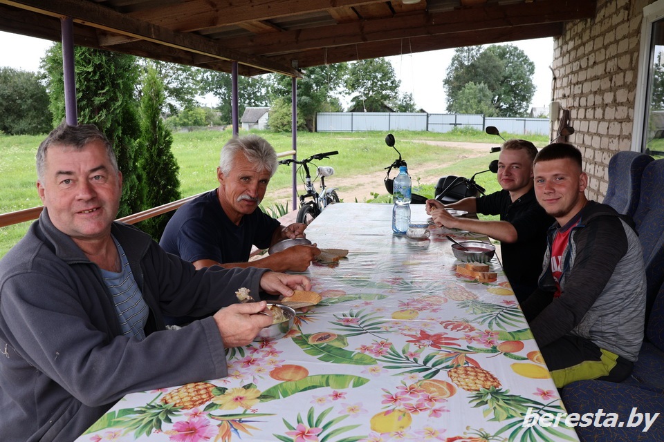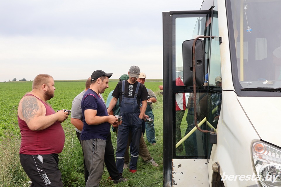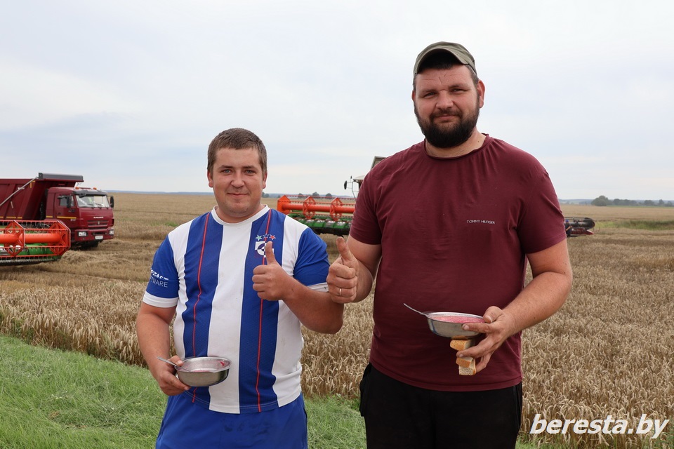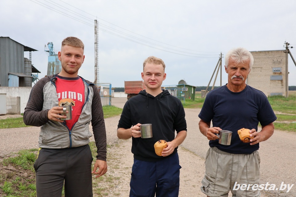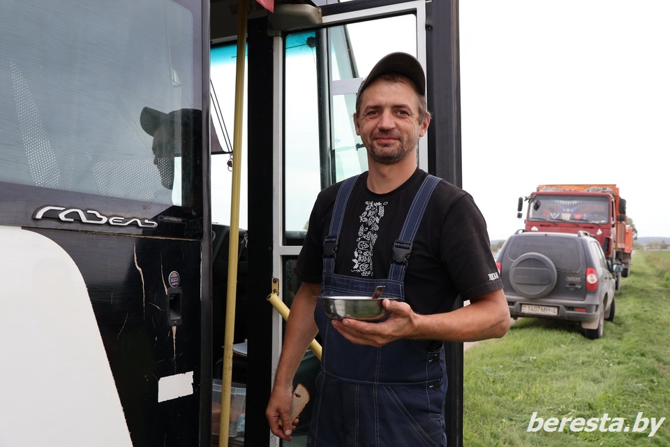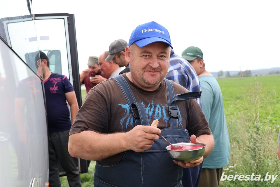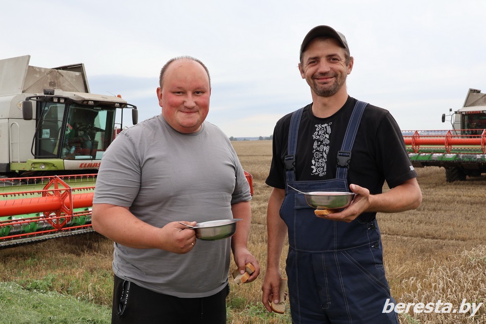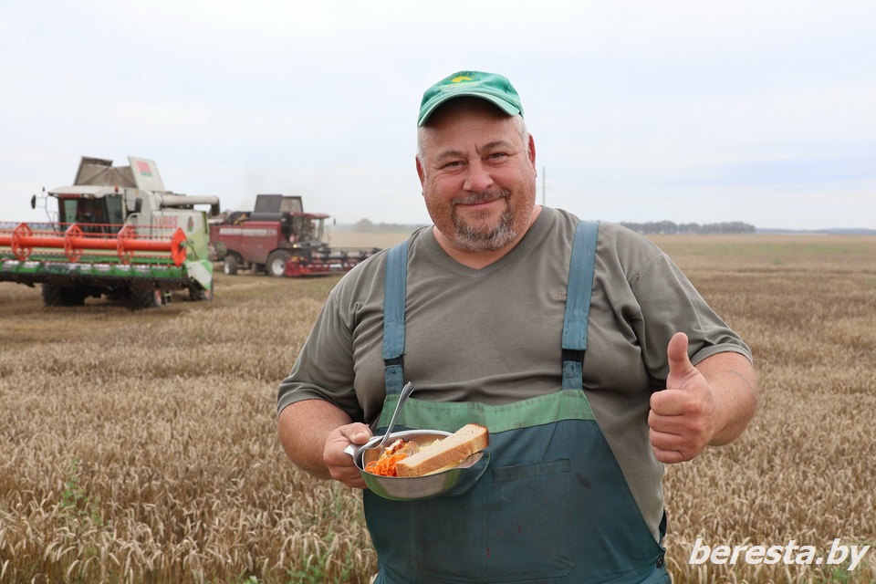 – Кормят нас очень вкусно и сытно, – говорит Антон Иодковский, слесарь по ремонту, который в сезон работает на уборке не первый десяток лет. – Обед всегда горячий, каждый раз что-то новое. В поле мы трудимся с раннего утра до позднего вечера. Приятно, что в такое напряженное время руководство хозяйства заботится о нас.