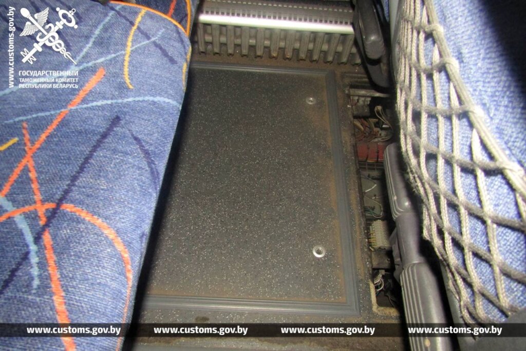 Гродненские таможенники по результатам сканирования транспортного средства направили автобус на досмотр, во время которого и были обнаружены в конструктивной полости автобуса спрятанные товары.