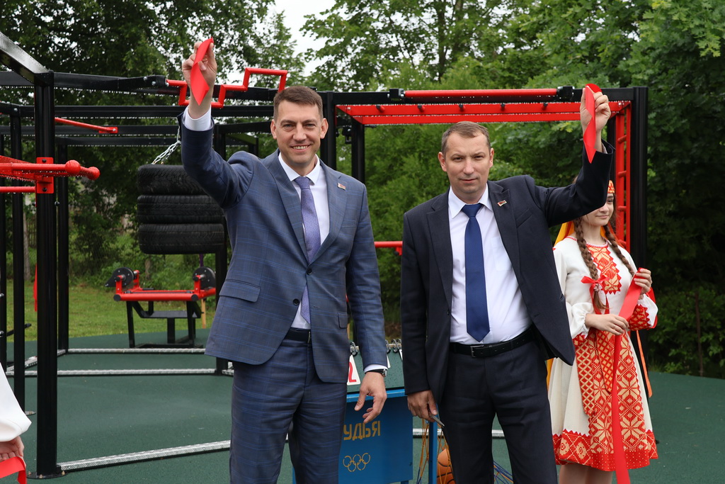 Новая спортивная площадка для уличного воркаута от Президентского спортивного клуба, которая уже успела стать местом притяжения для всех любителей активного образа жизни и спорта, появилась в агрогородке Олекшицы. Открытие современного и красивого тренажерного зала под открытым небом стало настоящим событием для агрогородка.