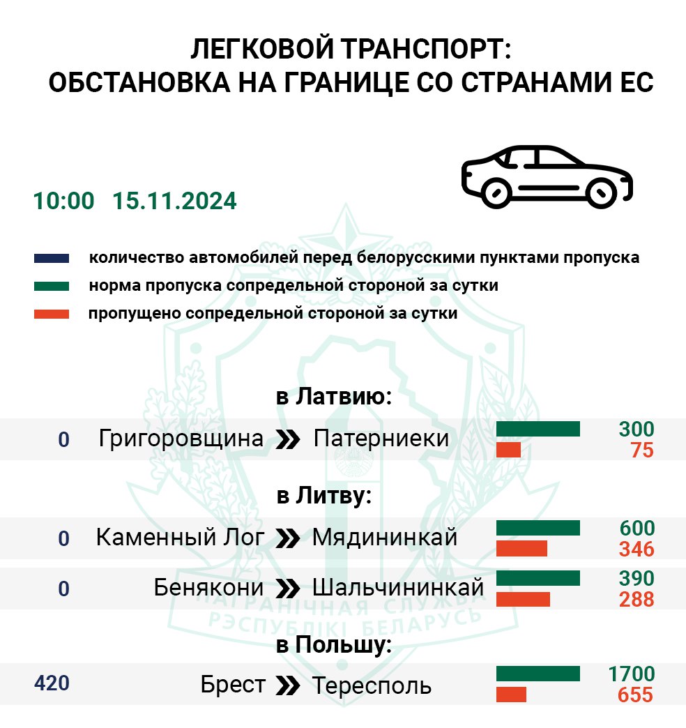 Около 420 легковых автомобилей ожидают въезда в ЕС перед польским Тересполем (Брест). Его контрольные службы приняли на свою территорию всего 38% транспорта.
