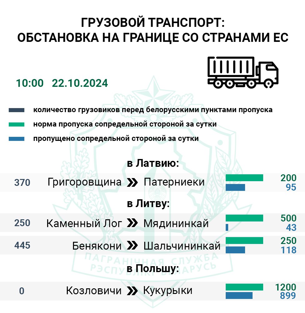 Самый загруженный маршрут проходит через литовский Шальчининкай (Бенякони). Перед данным пунктом пропуска въезда на сопредельную территорию ожидают 445 большегрузов, его контрольные службы за сутки оформили 47% фур от нормы.