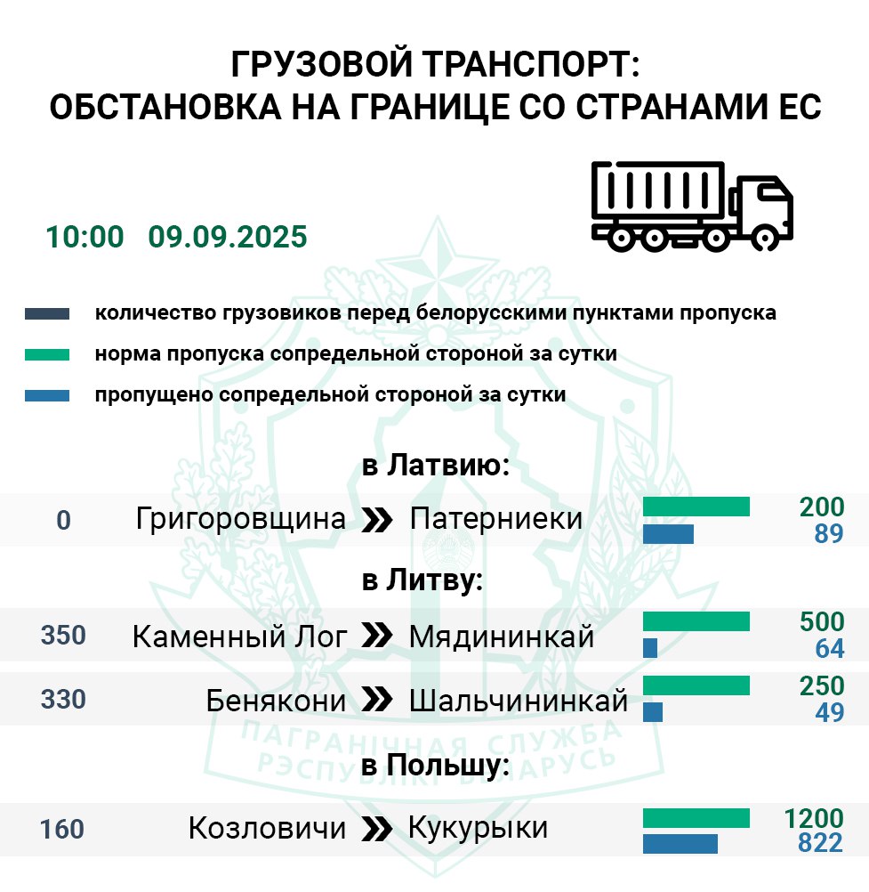 Въезда в польский Тересполь (Брест) по состоянию на 10:00 ожидают 1 150 легковушек и 10 автобусов. За сутки его контрольные службы приняли 46% авто из Беларуси.