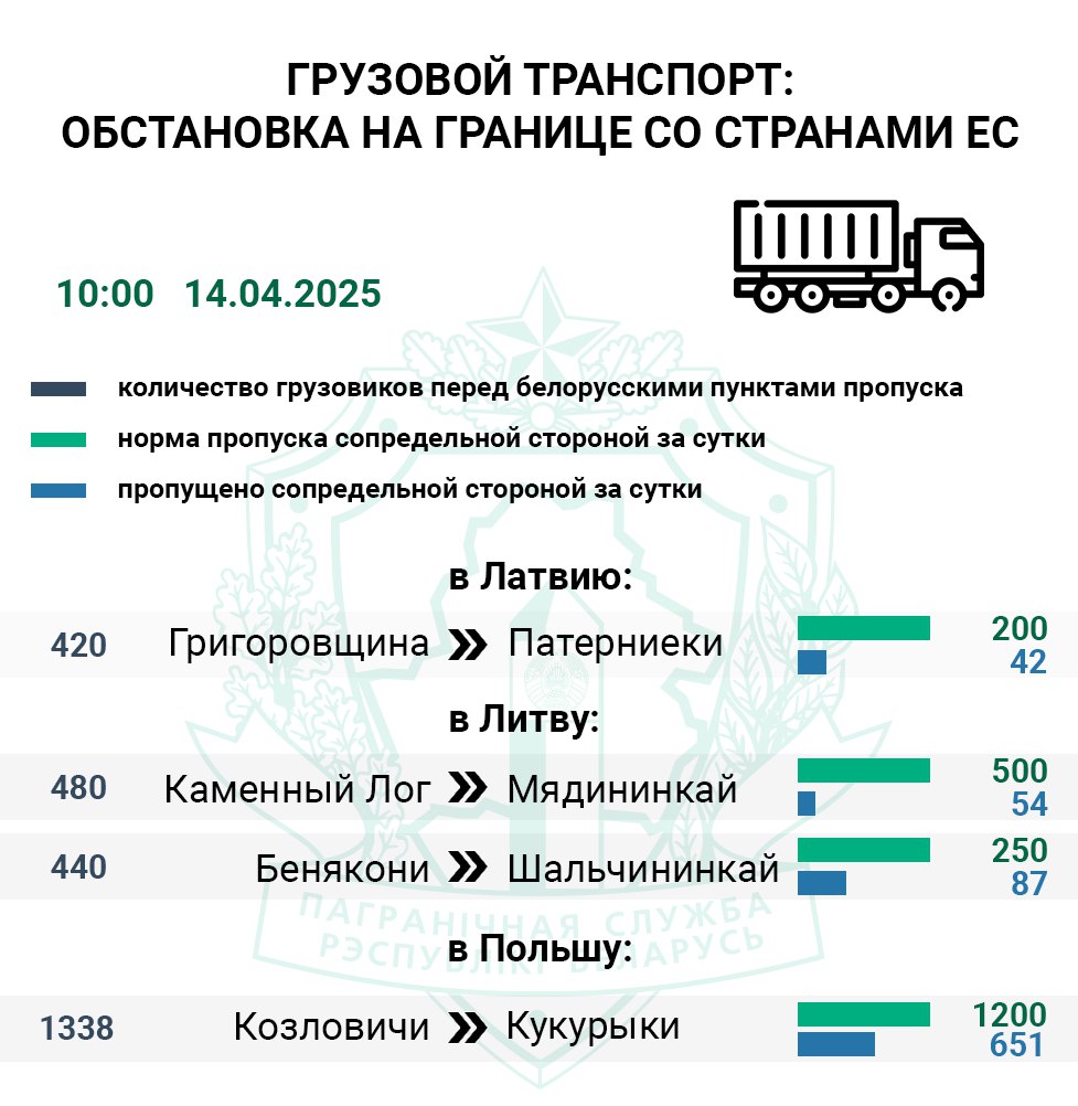 Самый загруженный маршрут в Евросоюз для грузового транспорта проходит через польский пункт пропуска Кукурыки (Козловичи). С пятницы скопление фур, ожидающих въезда на сопредельную территорию, выросло с 1150 до 1338 единиц. По данному маршруту в ЕС проследовало 56% грузовиков от нормы.