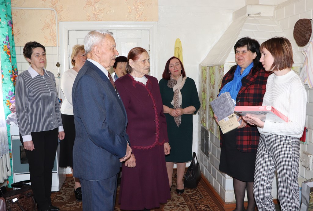 Взволнованные и счастливые супруги искренне благодарили всех, показали свою свадебную фотографию, сделанную 65 лет назад.