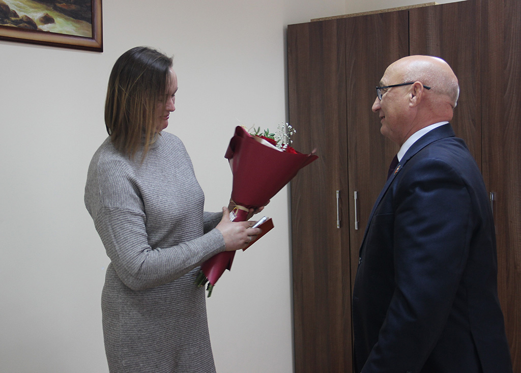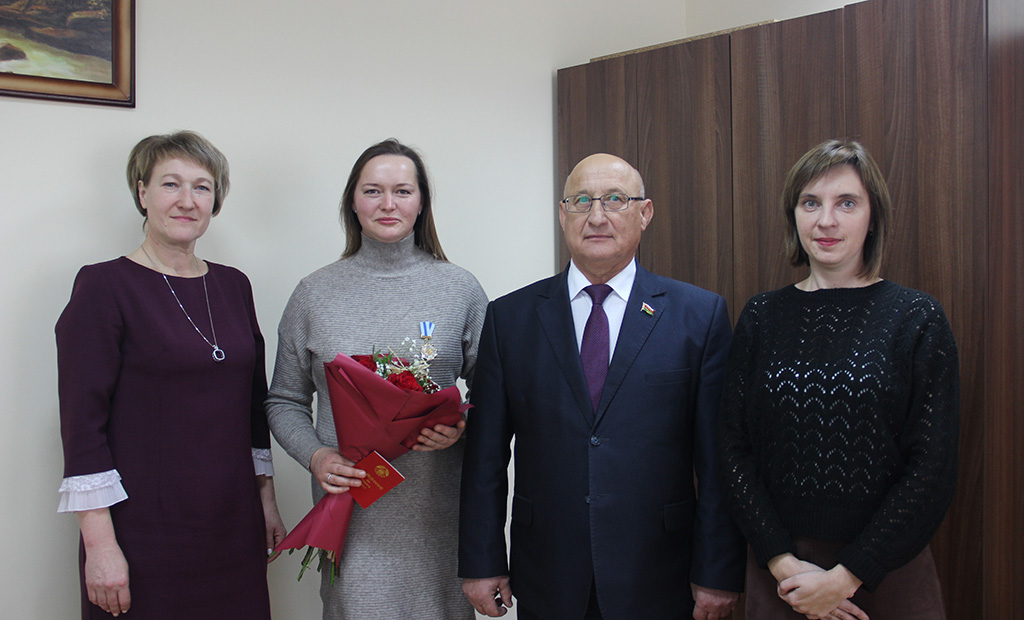С высокой государственной наградой многодетную маму поздравила начальник управления по труду, занятости и социальной защите райисполкома Жанна Хвастюк.