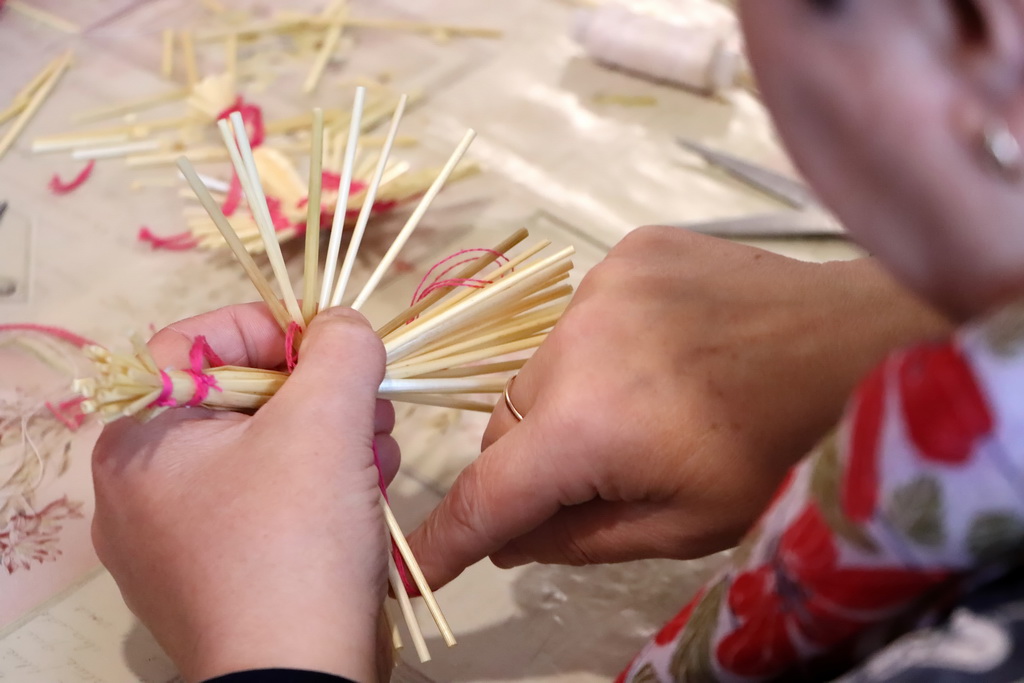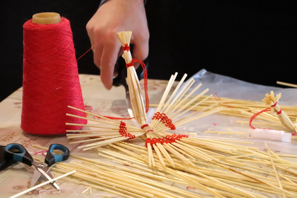 Саломка не адразу паддалася дзяўчатам, аднак з дапамогай работнікаў Дома рамёстваў творчы працэс пачаў спорыцца, і вось ужо “паляцелі” саламяныя птушачкі, упрыгожаныя рознакаляровымі ніткамі. Уласнаручна створаныя вырабы стануць выдатным сувенірам на памяць аб наведванні экспазіцыі і майстар-класа ў Год гістарычнай памяці.
